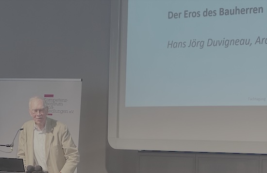 Für seinen beeindruckenden persönlichen Rückblick hatte Hans Jörg Duvigneau den Titel „Der Eros des Bauherren“ gewählt, als Sinnbild für die Liebe zum Bauen, für das Streben nach dem Guten und Schönen. Damit der Bau gelingt, bräuchte es festen Willen, Ehrgeiz und Beharrlichkeit des Bauherren. Mit diesen Eigenschaften sei es möglich, den alltäglichen Widrigkeiten zu trotzen und auch im Wohnungsbau dauerhaft Schönes und Nützliches zu schaffen.