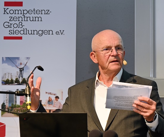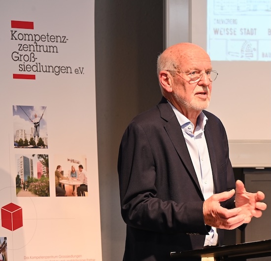 Anlass war der 90. Geburtstag von Hans Jörg Duvigneau, der in den 1980er und 1990er Jahren als langjähriger Geschäftsführer der damals größten Berliner Wohnungsbaugesellschaft GSW den Wohnungsneubau ebenso wie die Sanierung ganzer Stadtquartiere mitgeprägt hat und von 2005 bis 2008 Vorstandsvorsitzender des Kompetenzzentrums Großsiedlungen war.
