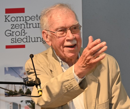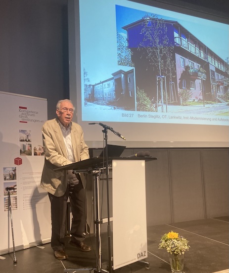 Anlass war der 90. Geburtstag von Hans Jörg Duvigneau, der in den 1980er und 1990er Jahren als langjähriger Geschäftsführer der damals größten Berliner Wohnungsbaugesellschaft GSW den Wohnungsneubau ebenso wie die Sanierung ganzer Stadtquartiere mitgeprägt hat und von 2005 bis 2008 Vorstandsvorsitzender des Kompetenzzentrums Großsiedlungen war.