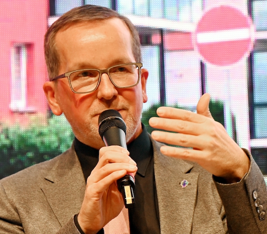 Frank Richter, Vorstand der Wohnungsbaugenossenschaft WOBAG, schilderte, wie im Thüringischen Sömmerda das große Wohngebiet "Neue Zeit" durch Modernisierung und ergänzenden Neubau umgestaltet wird. Trotz sinkender Einwohnerzahl steigt die Zahl älterer Single - Haushalte - und damit der Bedarf an altersgerechtem Wohnraum. Die Genossenschaft setzt aufgrund des dringenden Handlungsbedarfs die zweite Sanierungswelle trotz steigender Kosten und kaum noch zu sichernder wirtschaftlicher Tragbarkeit fort.